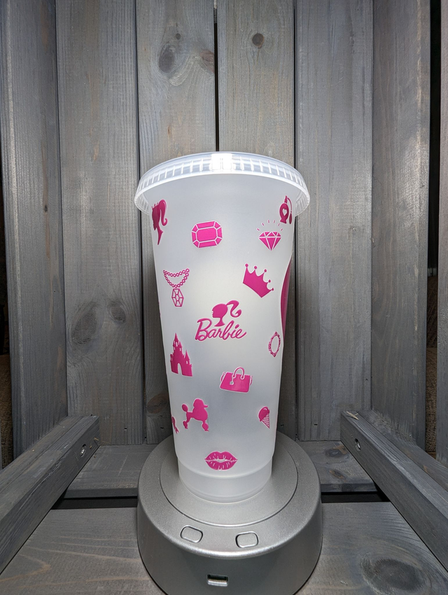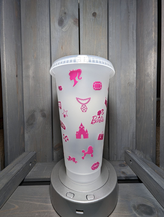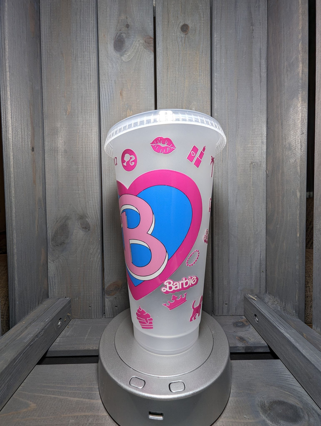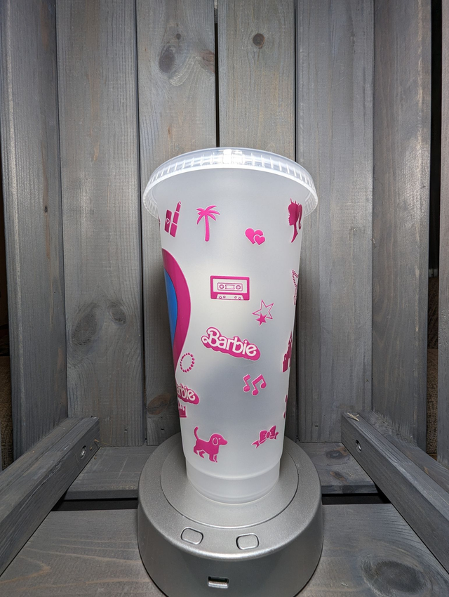 24oz Barbie Inspired Cold Cup, comes with lid and straw.