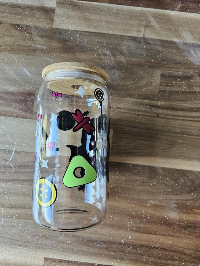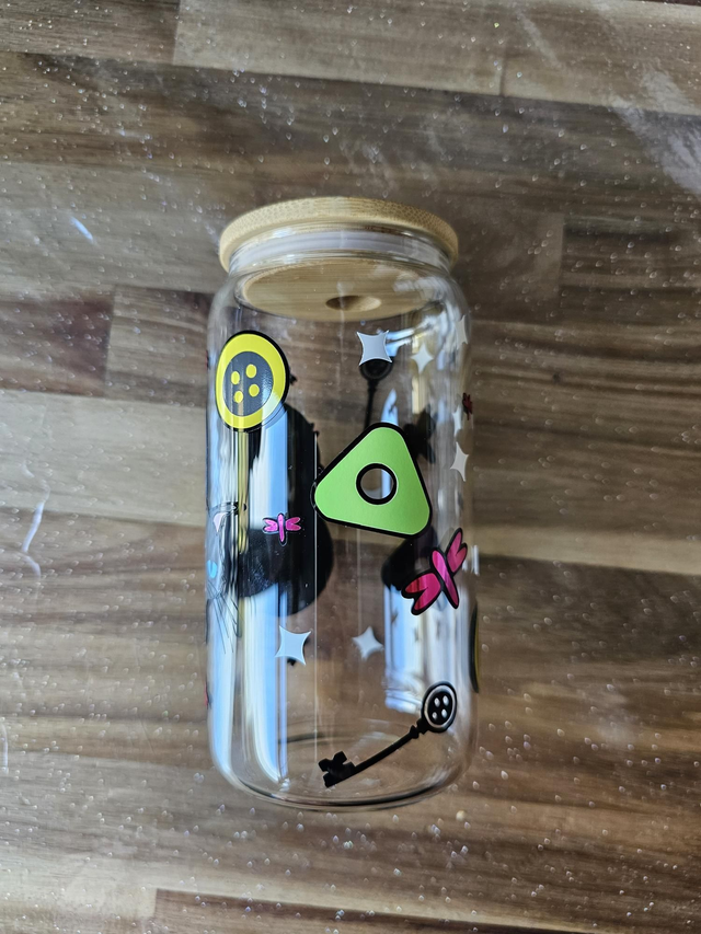 Coraline inspired glass coke can