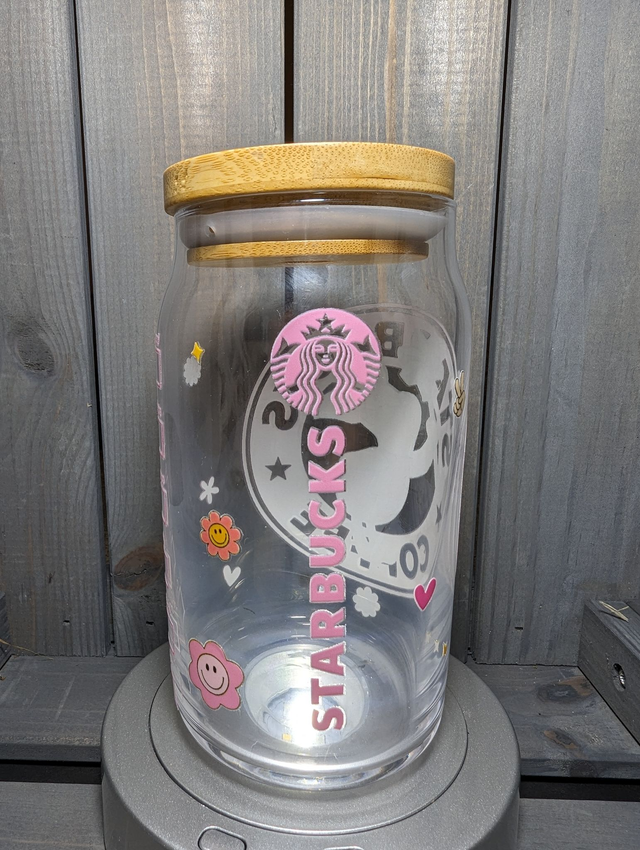 Complete with a wooden lid and a glass straw.