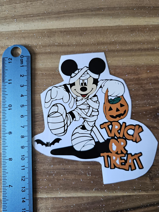 Small Mickey inspired Mummy vinyl about 12 cm in height. All handmade if you would like a size to fit something please get in touch as happy to make to your required size